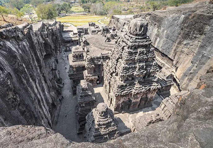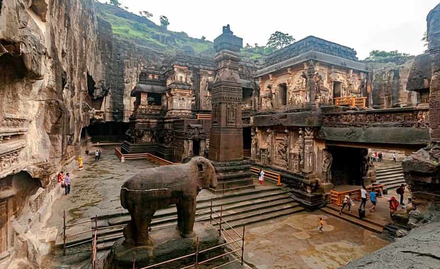 Ellora Caves are a multi-religious rock-cut cave complex with inscriptions dating from the period 6th century CE onwards, located in the Aurangabad District of Maharashtra, India. They are also called verul caves.